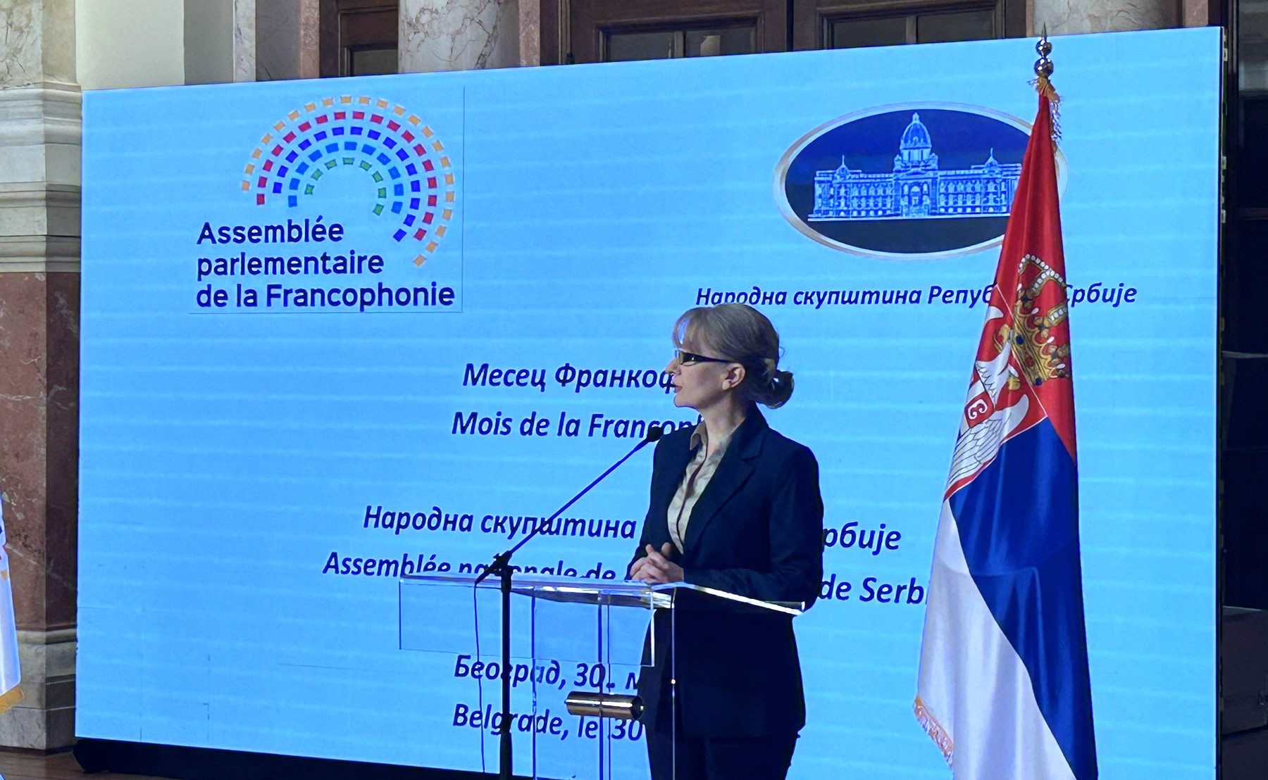 Povodom obeležavanja Meseca Frankofonije u Srbiji, u Domu Narodne skupštine održan je svečani prijem, na inicijativu šefice Stalne delegacije Narodne skupštine u Parlamentarnoj skupštini Frankofonije, mr Jadranke Jovanović.
